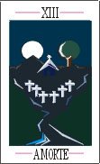 A Morte - Transformação Carta de efeitos instantâneos e radicais. Transformar tudo para renascer. - mudança de: país, casa, cidade, emprego, estado civil - - transformação radical - fim - desapego - Aparece a passagem de um nível a outro, o afastamento em relação às coisas que já se esgotaram e o início de uma nova situação. Mensagem: " Deixe o velho se ir, destrua-o e esteja aberto para o novo que se aproxima ". Ela deve ser vista como uma carta negativa . ////////////////////////////////////// Arcano XIV - A Temperança - Harmonia