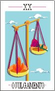 - realização - felicidade - entusiasmo - prazer - sucesso - saúde - O mais poderoso de todos os arcanos indica o momento certo para desenvolver novos empreendimentos e levar adiante iniciativas que terão muita chance de serem coroadas de êxito. Mensagem: " A felicidade é um estado da alma em que esta saboreia uma constante satisfação ". Ela sempre terá o valor de uma carta positiva . /////////////////////////////////////// Arcano XX - O Julgamento - Revelação É o renascimento do "eu" ou seja a passagem para um